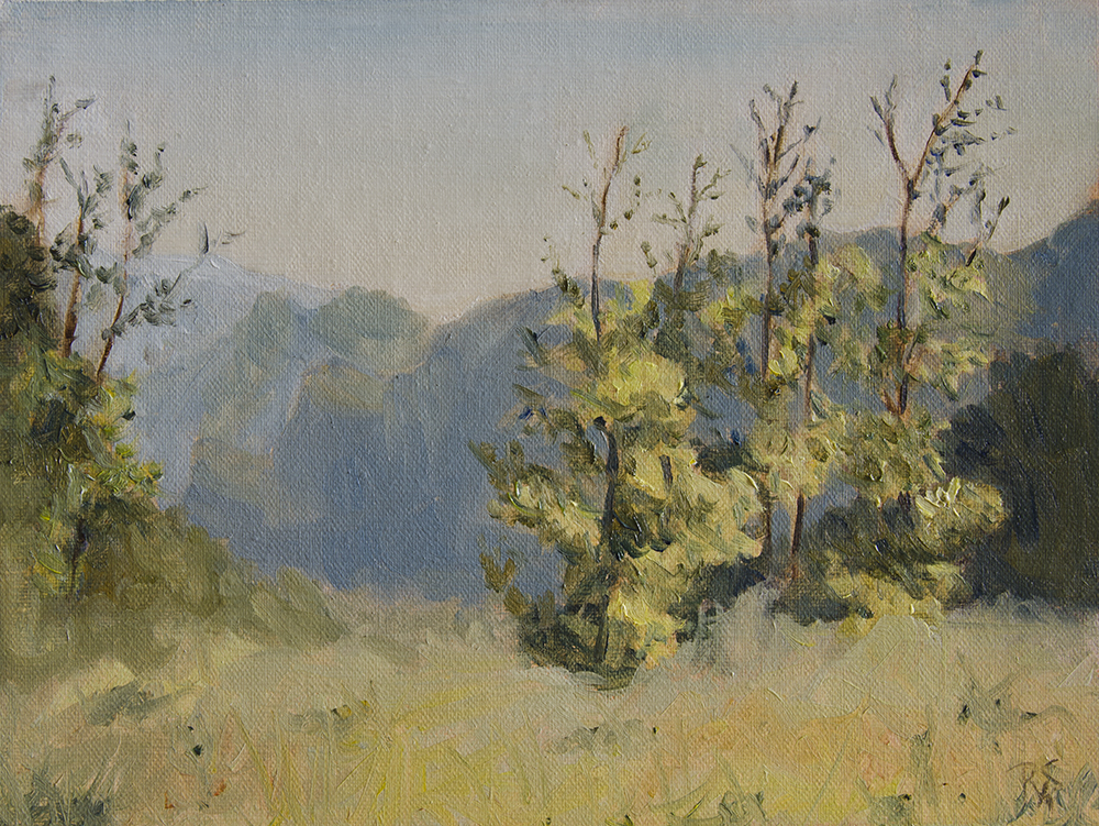 Sometimes I find the inspiration for a painting in the opposite direction than the one expected. Â Here I was with a beautiful lake behind me.