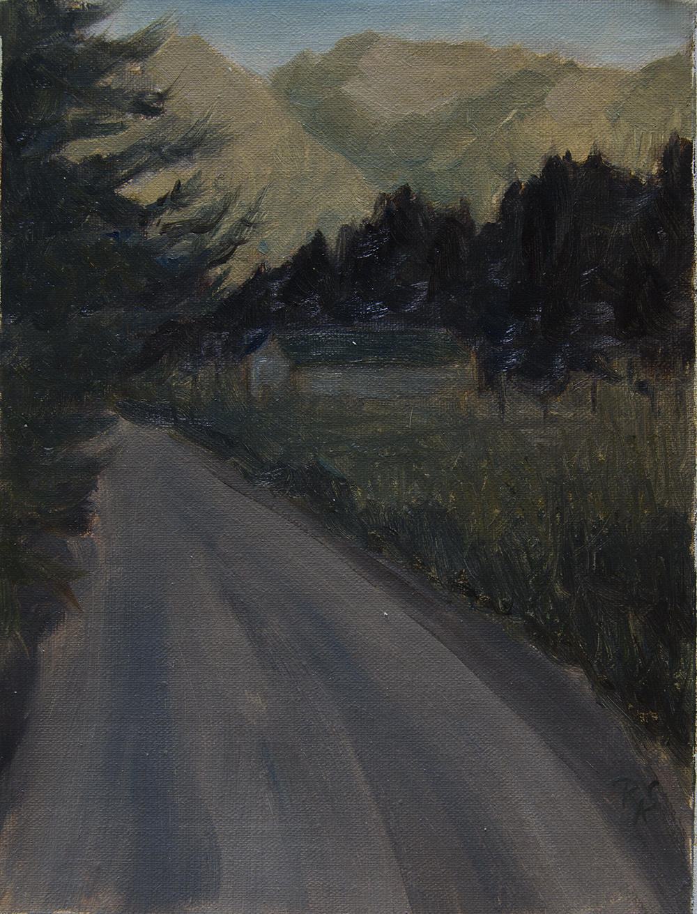 There is a beauty in the time just before the sun rises. Â I found this spot and painted as the sun rose on the distant mountain.