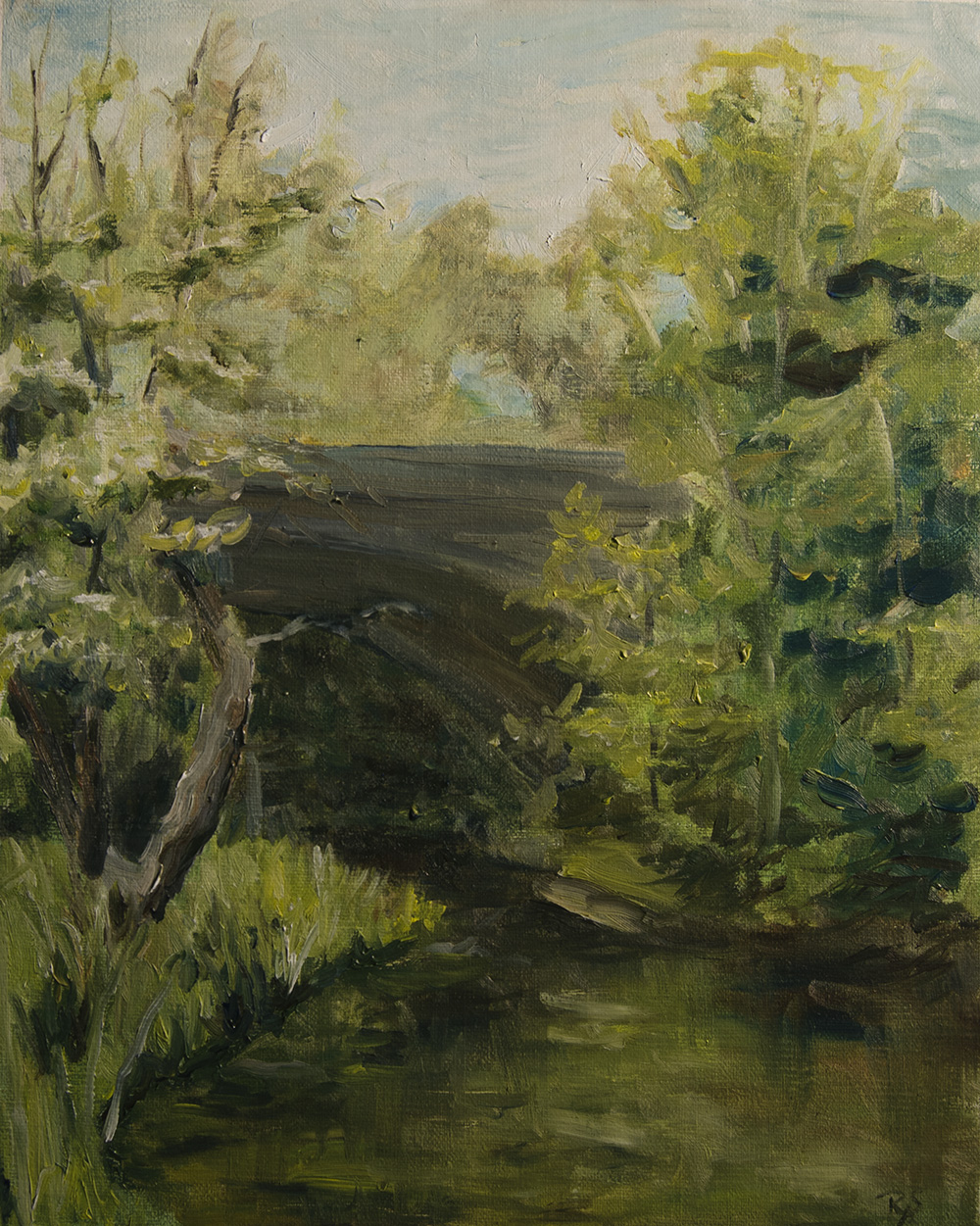 Almost a year after my last plein air oil sketch, I made it out to paint with my artist friend Jessica Green last May. Â I have painted a few watercolor car paintings since January, but it felt so good to get back out and paint. Â Indiana this time of year is a variety of greens that can sometimes give me a headache as I paint!