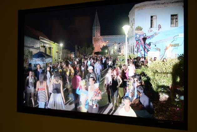 In the Venezuela pavilion of the Venice Biennial, I came across Clemencia Labin’s art video entitled “The Street”.  The interesting thing about this time-lapse type video is that as the pace of the traffic on the street picked up, the speed of the video picked up.  At the beginning of the video, early morning light bathes the scene and a woman walks slowly down the road away from the viewer.  The road slowly contains more people doing different things, until at the end the road is a night scene packed with people.  The video was looped with white in-between that for me, separated one day from the next.  The piece can be viewed on Ms. Labin’s website.