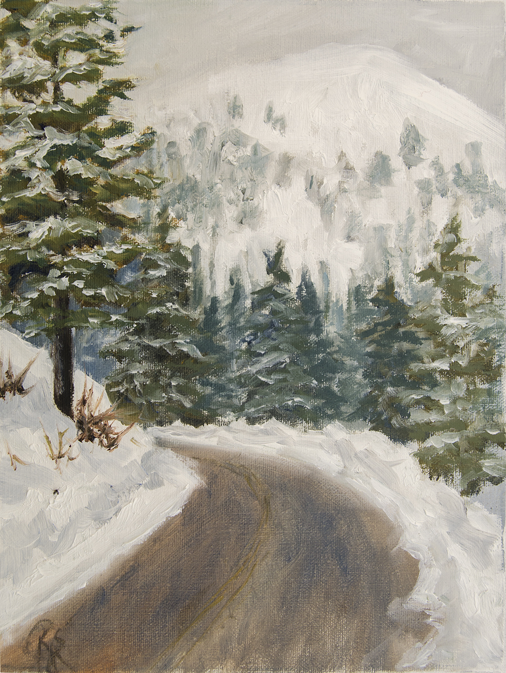 I pulled over on the windy road and painted this curving road and distant hill. Lead me into this forest so I can see around the bend.