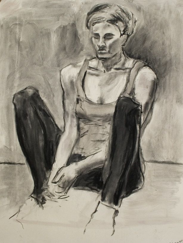Here is a recent 25 minute charcoal sketch of a girl drawing herself together (perhaps inwardly and outwardly?)