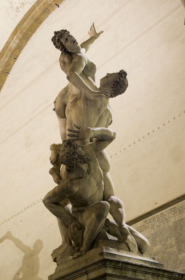 Below is a photograph of the sculpture, The Rape of the Sabine Women, by Giambologna.